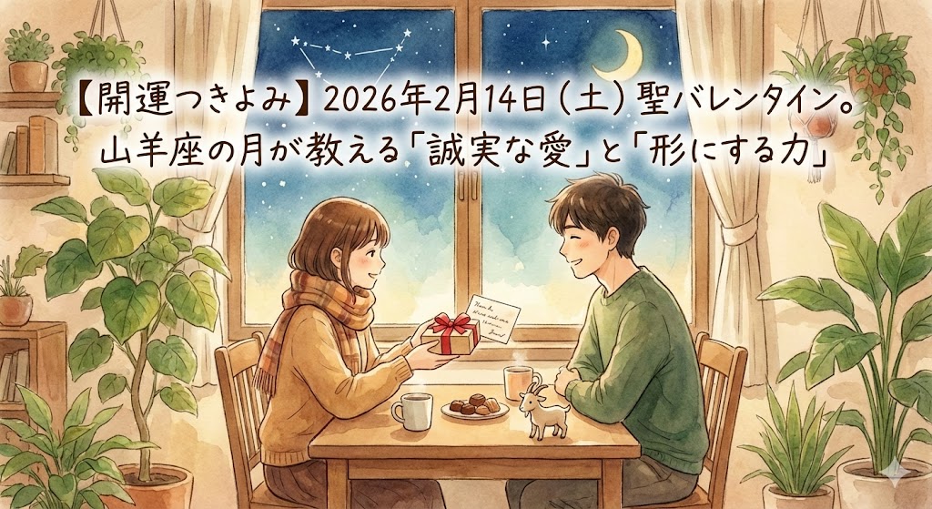 今日の月は、伝統と責任を重んじる山羊座にあります。 バレンタインという華やかな日ですが、星たちが求めているのは「浮つかない愛」です。 大切な人へ想いを伝えるなら、流行りの言葉よりも、あなたの心からの「本音」を。豪華なプレゼントよりも、手書きのメッセージや、相手を想って選んだ「本物」が、相手の心の深い部分に届きます。