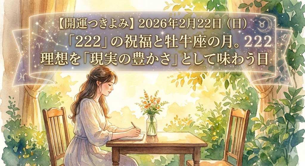 【開運つきよみ】2026年2月22日(日)「222」の祝福と牡牛座の月。理想を「現実の豊かさ」として味わう日