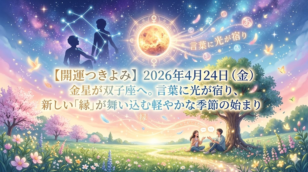 2026年4月24日。本日、私たちの「喜び」や「ときめき」の基準がガラリと変わる瞬間がやってきます。 午前10時15分頃、愛と豊穣の星・金星が、地のサイン(牡牛座)から風のサイン(双子座)へと移動します。