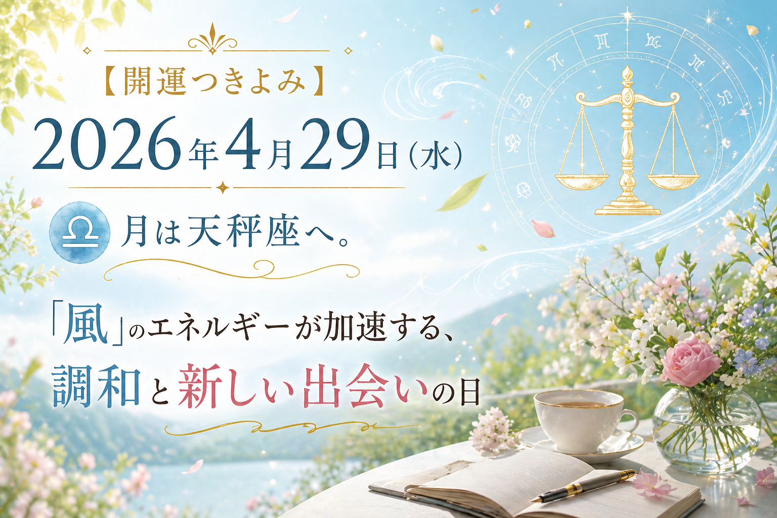 特筆すべきは、この天秤座の月が、双子座にいる金星・天王星と同じ「風」のエレメントであることです。 「開運つきよみ」が紐解く、滞っていたものがスッと動き出す、軽やかな水曜日の星の処方箋をお届けします。