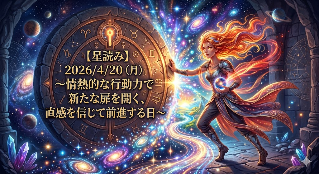 2026年4月20日(月)、宇宙は私たちに特別なエネルギーを送ってくれています。太陽が牡羊座で輝き、月が蠍座に位置するこの日は、新しいスタートへの情熱と、深い洞察力が美しく調和する一日となるでしょう。