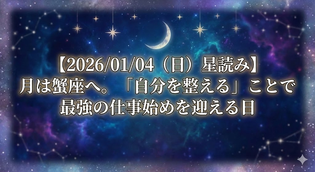 月が滞在する蟹座は、自分の「ホーム(家や家族)」を象徴します。 明日からの仕事や日常生活がスムーズに回るよう、キッチンを少し片付けたり、寝具を整えたりすることで、運気の土台が安定します。物理的な環境を整えることが、そのまま心の安定へと直結する日です。