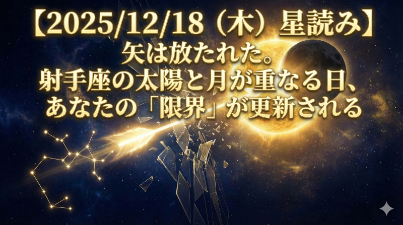 今日の星空は、非常に神秘的で、かつ未来への希望に満ちた配置になっています。 太陽と月が共に「射手座」にあることは昨日とお伝えしましたが、今日はさらに**「月のサイクル」**において重要な意味を持ちます。